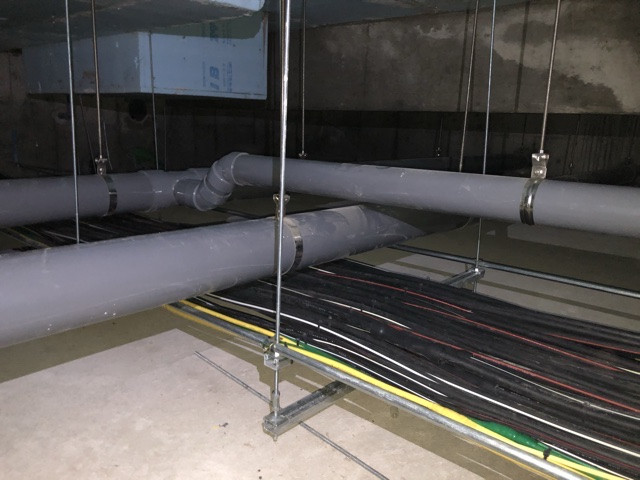 兵庫県尼崎市の分譲マンション様の全戸インターホン交換工事を行うにあたって、先行して建物地下の配線をさせて頂きました。